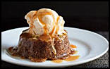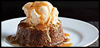 With DELICIOUS TOFFEE SAUCE AND VANILLA ICE CREAM