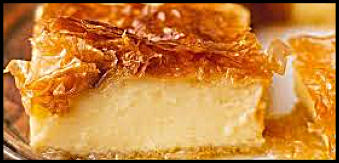 Filo pastry, custard, semolina, vanilla with honey & lemon syrup