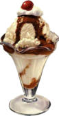 With VANILLA ICE CREAM AND CHOCOLATE SAUCE